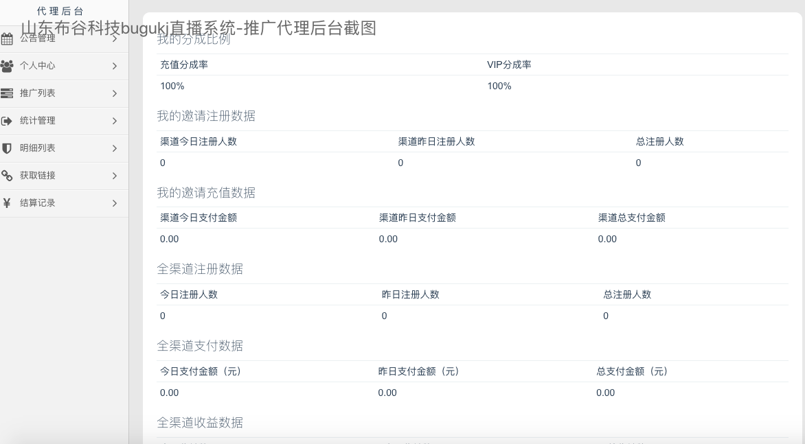 布谷直播系统开发代理后台: