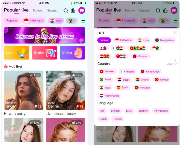 近期,从海外客户的主要咨询需求来看,主要是围绕在借鉴主流APP,在此基础上需要开发属于他们Agency、Coinseller、CP、PK等特色功能。每个客户的需求都有差异,建议您从自己的运营方向出发,...