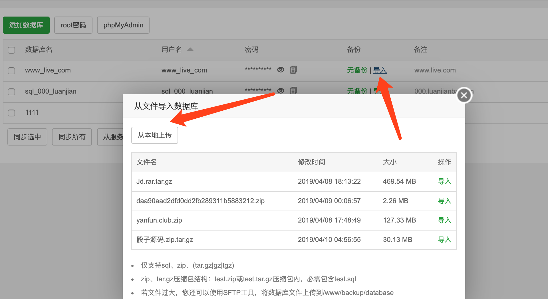 7、本地上传数据库